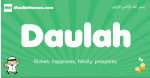 Meaning of Daulah is Riches, happiness, felicity, prosperity