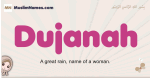 Meaning of Dujanah is A great rain, name of a woman.
