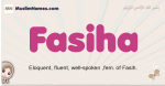 Meaning of Fasiha is Eloquent, fluent, well-spoken ,fem. of Fasih.