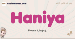 Meaning of Haniya is Pleasant, happy.