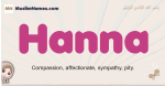 Meaning of Hanna is Compassion, affectionate, sympathy, pity.