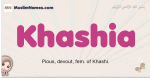 Meaning of Khashia is Pious, devout, fem. of Khashi.
