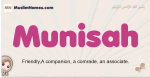 Meaning of Munisah is Friendly,A companion, a comrade, an associate.