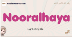 Meaning of Nooralhaya is Light of my life.