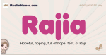 Meaning of Rajia is Hopeful, hoping, full of hope, fem. of Raji.