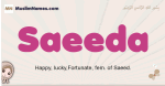 Meaning of Saeeda is Happy, lucky,Fortunate, fem. of Saeed.