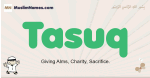 Meaning of Tasuq is Giving Alms, Charity, Sacrifice.