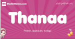 Meaning of Thanaa is Praise, applause, eulogy.