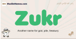 Meaning of Zukr is Another name for god, pile, treasury